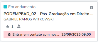 - Encontra a Negociação Existente: O sistema localiza o “card” da negociação que já existia para aquele contato e curso.